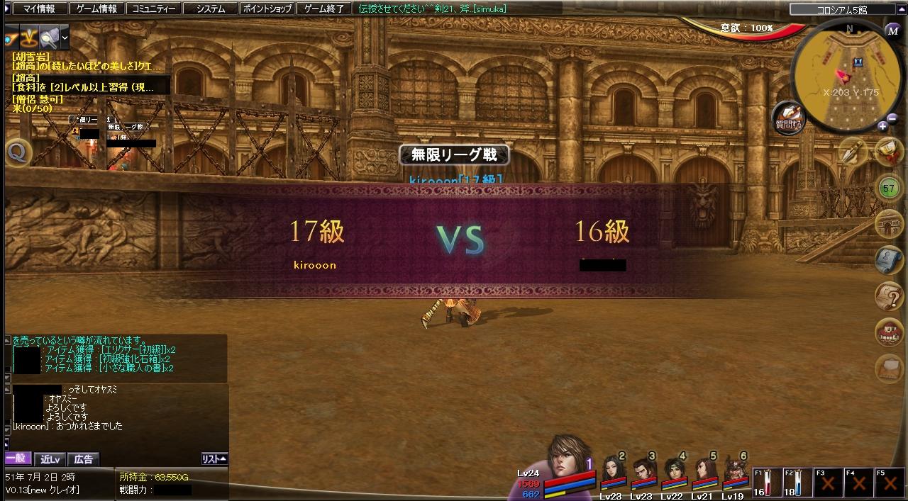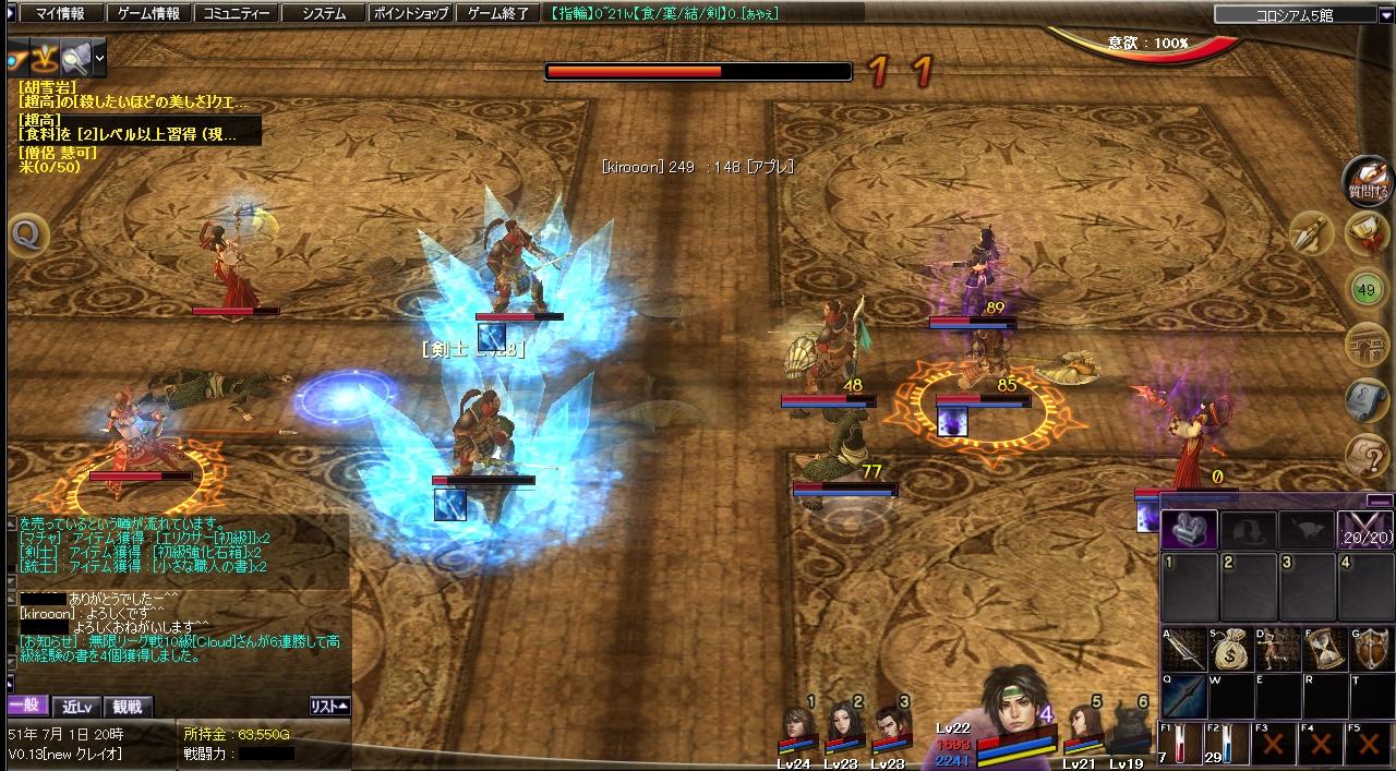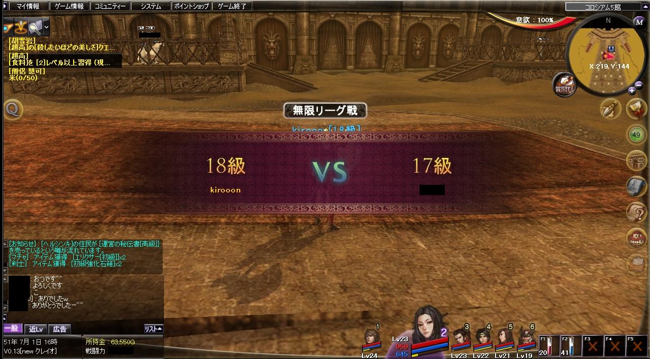 このとき、狩りで戦闘してたりほかの戦いを観戦していると